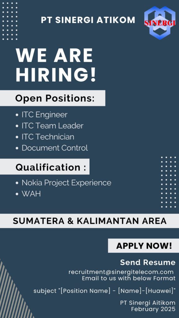 🔹Posisi: ITC Engineer, ITC Team Leader, ITC Technician, Document Control